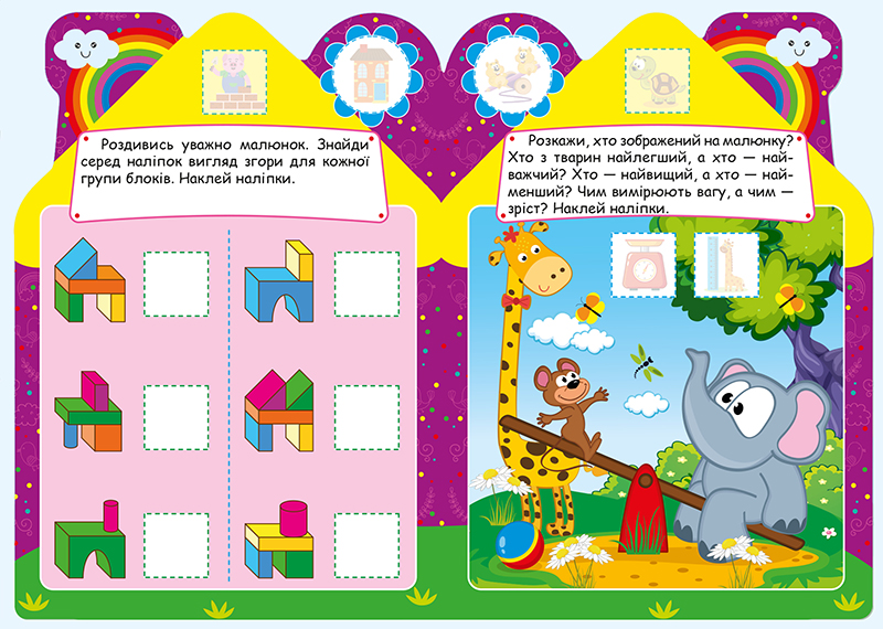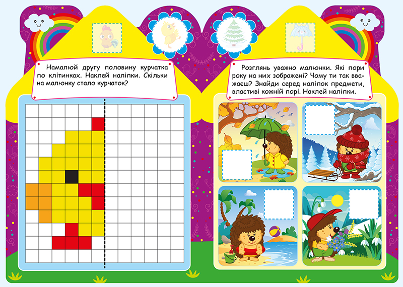Ці книжечки для активних, допитливих маленьких дослідників. Цікаві та різноманітні за змістом завдання допоможуть розвинути просторове і образне мислення, увагу й пам’ять малечі. Яскраві різнобарвні ілюстрації, персонажами яких є доброзичливі веселі тварини, а також інтерактивні наліпки спонукатимуть до застосування уяви й творчих здібностей дітлахів. Із цими книжками процес навчання та пізнання стане легким і захоплюючим.
