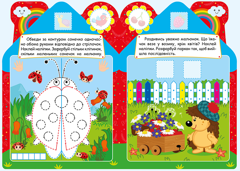Ці книжечки для активних, допитливих маленьких дослідників. Цікаві та різноманітні за змістом завдання допоможуть розвинути просторове і образне мислення, увагу й пам’ять малечі. Яскраві різнобарвні ілюстрації, персонажами яких є доброзичливі веселі тварини, а також інтерактивні наліпки спонукатимуть до застосування уяви й творчих здібностей дітлахів. Із цими книжками процес навчання та пізнання стане легким і захоплюючим.