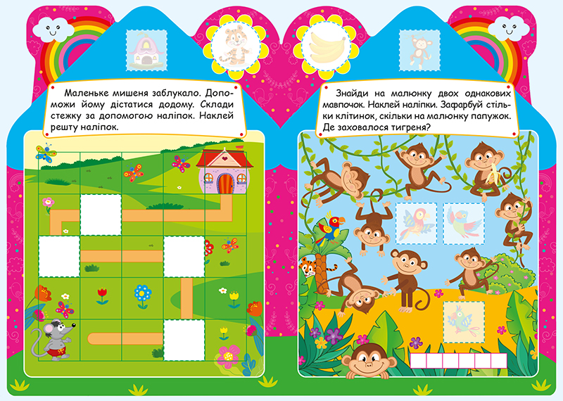 Ці книжечки для активних, допитливих маленьких дослідників. Цікаві та різноманітні за змістом завдання допоможуть розвинути просторове і образне мислення, увагу й пам’ять малечі. Яскраві різнобарвні ілюстрації, персонажами яких є доброзичливі веселі тварини, а також інтерактивні наліпки спонукатимуть до застосування уяви й творчих здібностей дітлахів. Із цими книжками процес навчання та пізнання стане легким і захоплюючим.