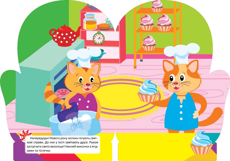 У книжці запропоновано яскраві наліпки для маленьких пальчиків. Подаруйте дитині свято – придбайте книжечки та разом із малюком добирайте потрібні наліпки, доповнюйте малюнки з казковими звірятками.