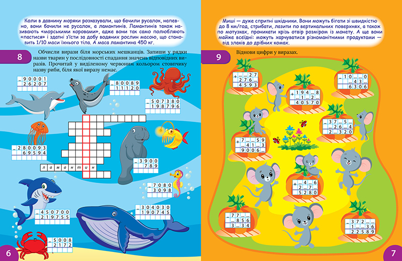 Мета цієї серії – навчити школярів обчислювати правильно і швидко. У книжці підібрані цікаві за формою подачі завдання, міститься пізнавальна інформація про тварин, що сприяє тренуванню й розвитку математичних здібностей, дослідницького інтересу учнів.