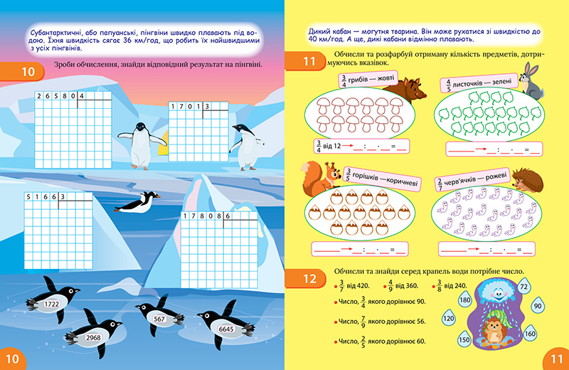 Мета цієї серії – навчити школярів обчислювати правильно і швидко. У книжці підібрані цікаві за формою подачі завдання, міститься пізнавальна інформація про тварин, що сприяє тренуванню й розвитку математичних здібностей, дослідницького інтересу учнів.