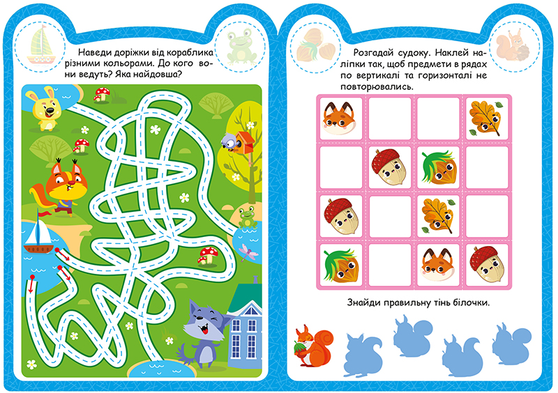Ці книжки для допитливих, активних і кмітливих малюків. Вони містять творчі завдання, виконання яких допоможе розвинути просторове та логічне мислення, фантазію й увагу дітлахів. Яскраві ілюстрації та наліпки сприятимуть формуванню естетичного смаку та уяви.