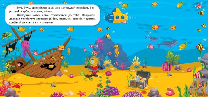 Книга яскравих наліпок “Підводний світ” спрямована на розвиток уяви та фантазії кожної дитини. Граючись з улюбленими персонажами, малюк не лише створюватиме незвичайну історію, а й покращуватиме дрібну моторику. Часто сама оповідка підказуватиме, яку власне наліпку слід шукати, або навпаки – дозволить проявити уяву та кмітливість і додати на сторінку наліпку на власний розсуд, таким чином створивши нову історію.