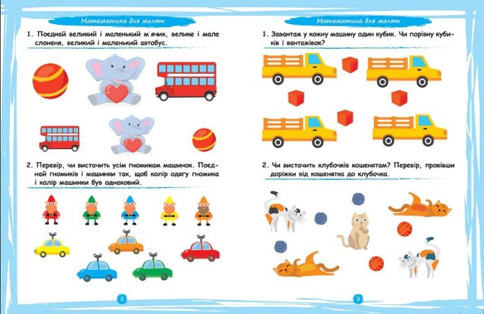 Книжка містить різноманітні вправи для всебічного розвитку дитини віком від двох років. Завдання поділені на п’ять розділів: “Математика для малят”; “Підготовка руки до письма”; “Правила етикету та безпечної поведінки”; “Логіка, увага, пам’ять”; “Я і світ”. Завдяки цікавим та ефективним заняттям малюк зробить перші впевнені кроки у світ навчання із задоволенням. Книжка призначена для спільних занять дорослого та дитини. Кожна вправа укладена відповідно до вікових особливостей малюка. Бажаємо успіхів!