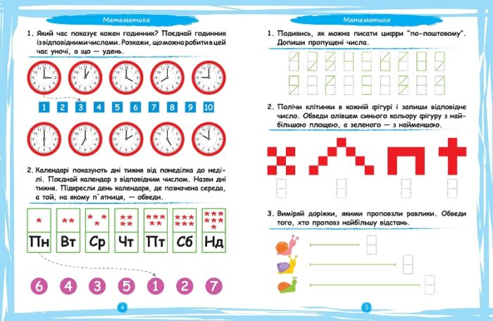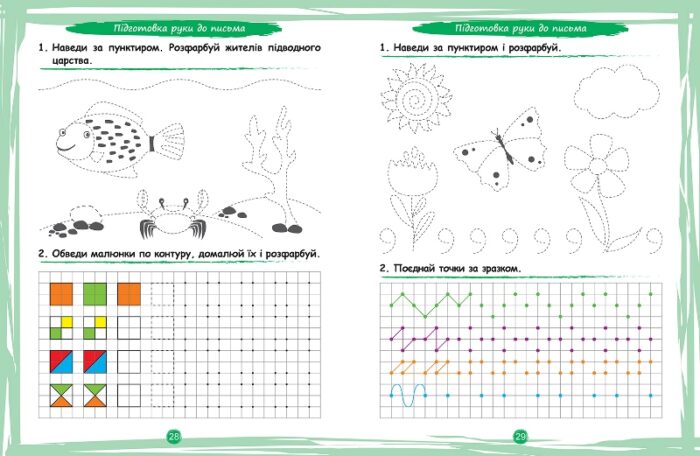 Книжка містить різноманітні вправи для всебічного розвитку дитини віком від п’яти років. Завдання поділені на п’ять розділів: “Математика”; “Підготовка руки до письма”; “Правила етикету та безпечної поведінки”; “Логіка”; “Я і світ”. Завдяки цікавим та ефективним заняттям малюк зробить впевнені кроки у світ навчання із задоволенням. Книжка призначена для спільних занять дорослого та дитини. Кожна вправа укладена відповідно до вікових особливостей малюка. Бажаємо успіхів!