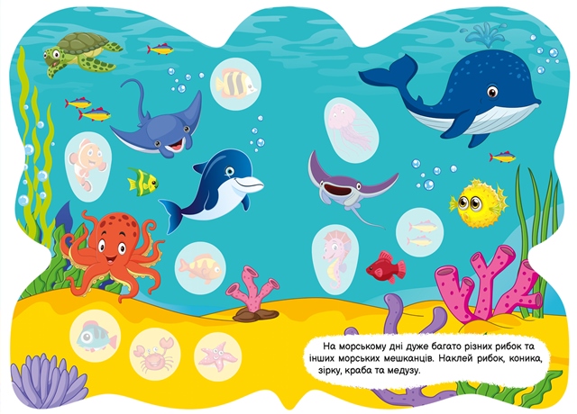 На сторінках даної книги малюки зустрінуть улюблених тваринок і за допомогою наліпок поринуть разом із ними в дивовижні пригоди. Також яскраві наліпки допоможуть дитині потренувати дрібну моторику, розвинути увагу, уяву, логічне мислення та посидючість.