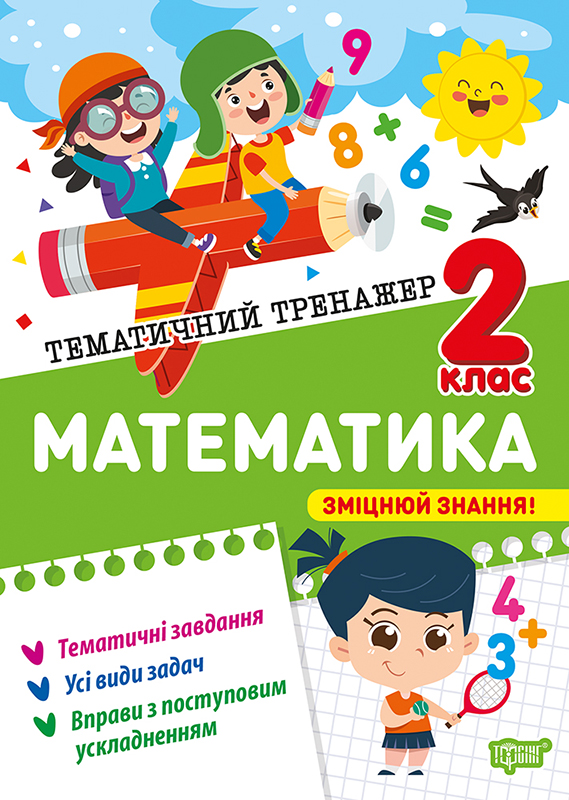 Тренажер містить завдання з основних тем математики для учнів 2 класу. Підібрані завдання дозволять учням не тільки розвинути обчислювальні навички, а й навчать знаходити раціональні шляхи вирішення вправ і задач.