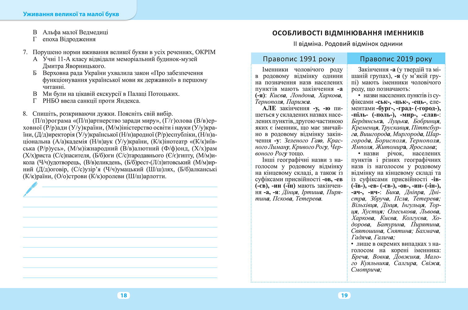 Зміни в українському правописі» 2019 року постановою Кабінету Міністрів України було схвалено зміни до Українського правопису. У цьому посібнику розкрито основні зміни, що відбулися в правилах, зіставлено старий і новий варіанти написання слів, висвітлено нові правила. Для ефективного їх засвоєння і вироблення навичок у посібнику подано завдання в тестовій формі до кожного розділу.